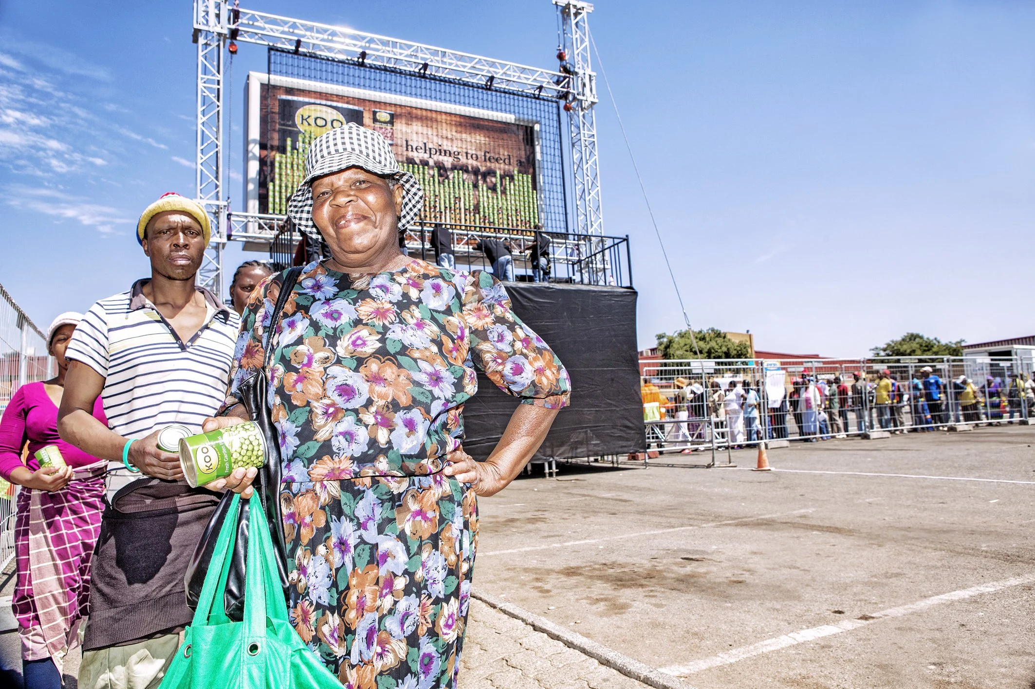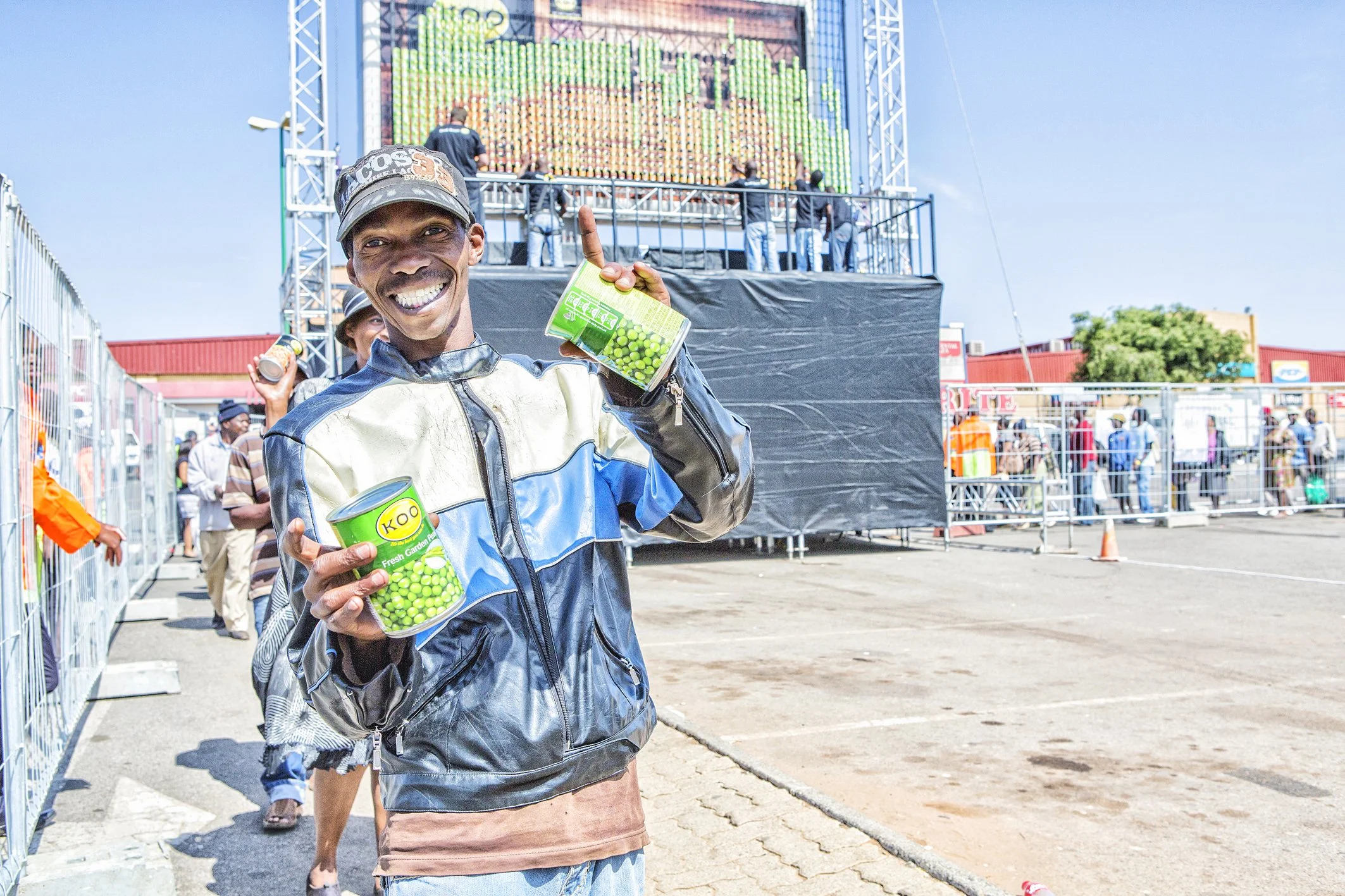 On October 16, all was revealed. The night before, a special frame around the existing billboard was filled with 2106 KOO cans which formed the shape of the KOO logo. The cans were then distributed to community members of Dobsonville who got to engage with the billboard. As each can was removed from the frame, via a specially constructed chute, a new message was revealed: “Helping to feed a nation”.